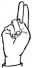 На ћирилици написано ВОЈИСЛАВ ТЕОФИЛОВИЋ састоји се из 18 слова [?]. Исписано ћириличном једноручном азбуком за глувонеме: